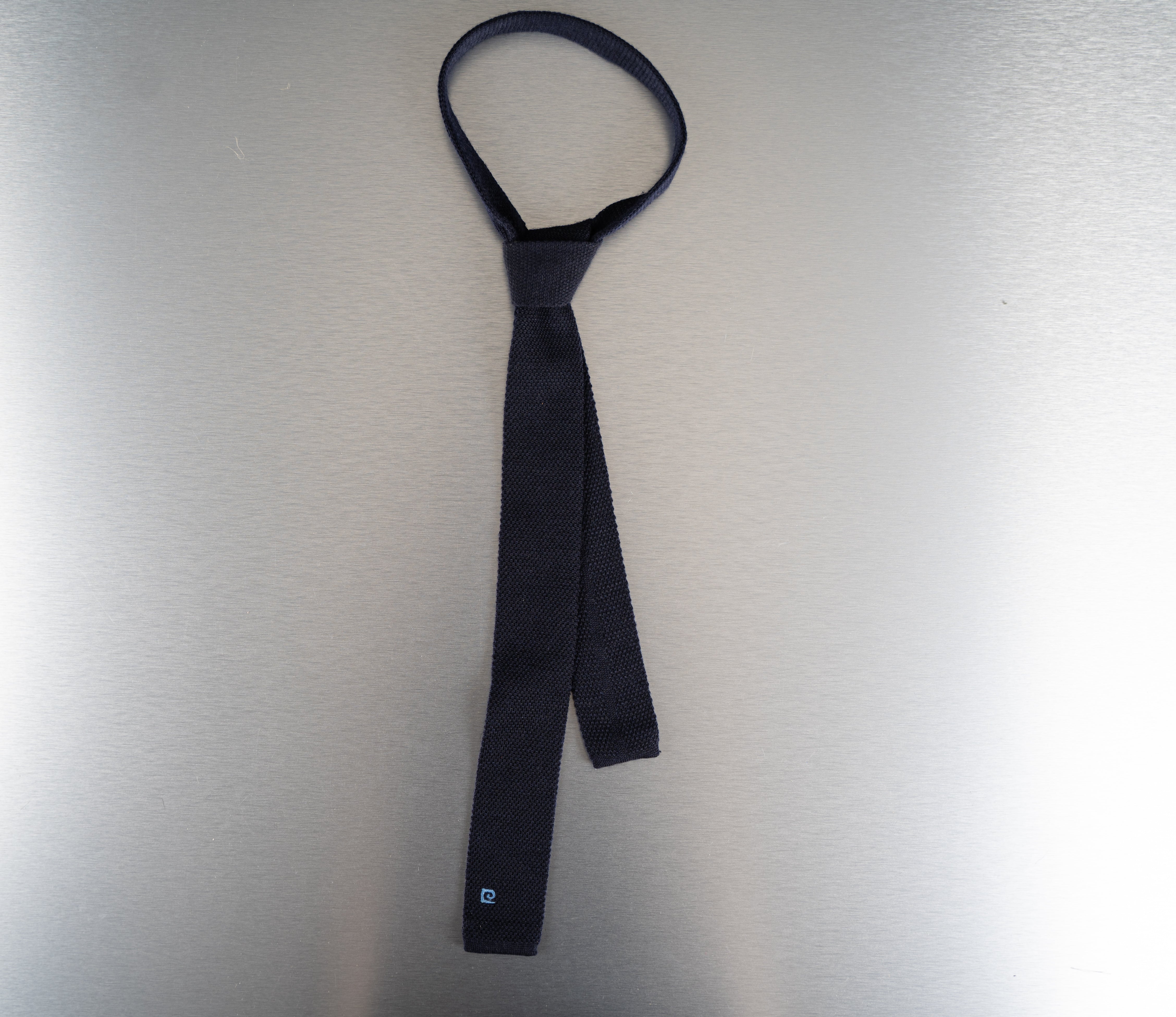 This Black Headband is a versatile accessory. Crafted from a stretchy, knitted polyester or nylon material, it features a plain black design with a small, light blue logo on the lower end. This unisex headband is suitable for athletic, outdoor, or fashion purposes and is in Good condition.