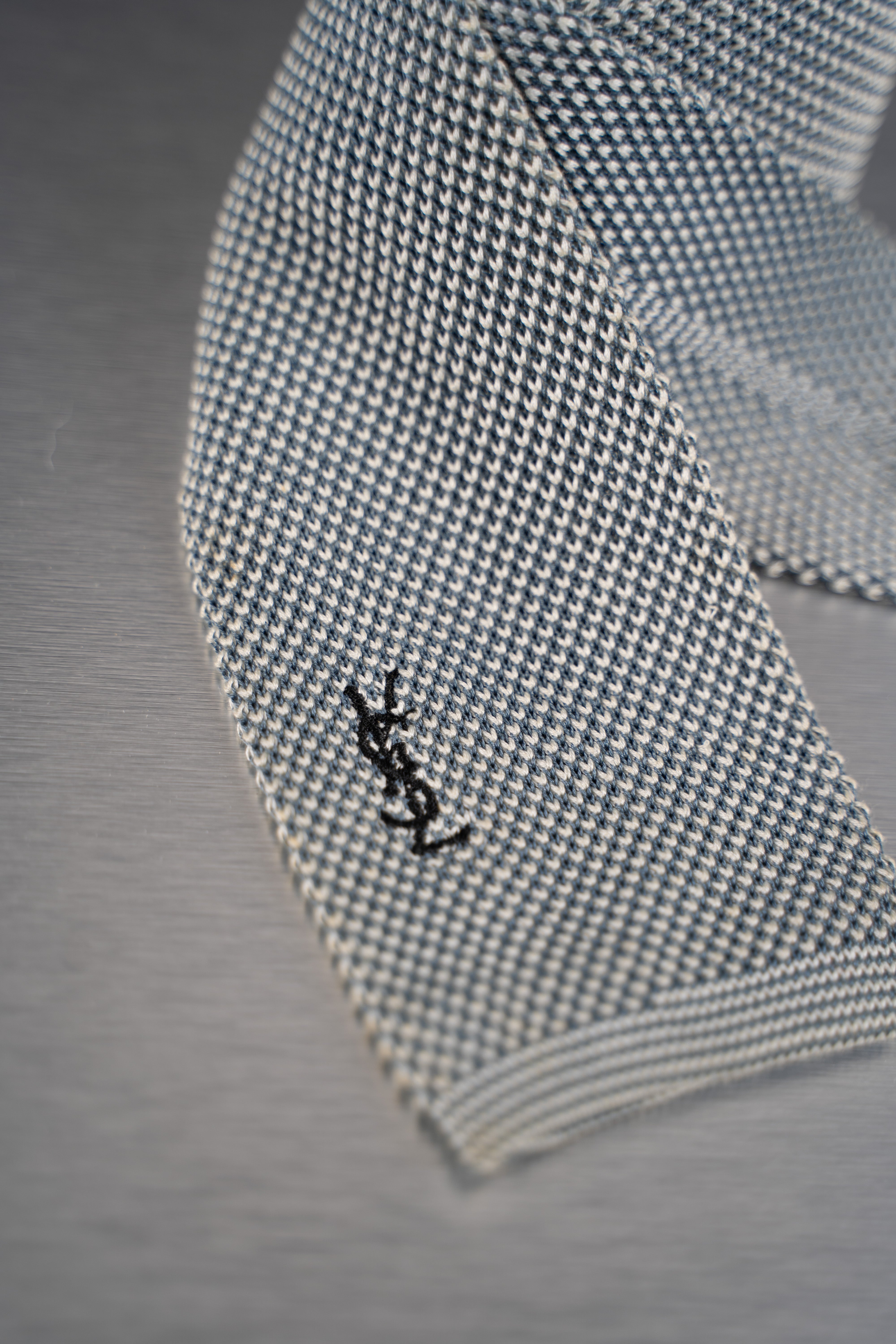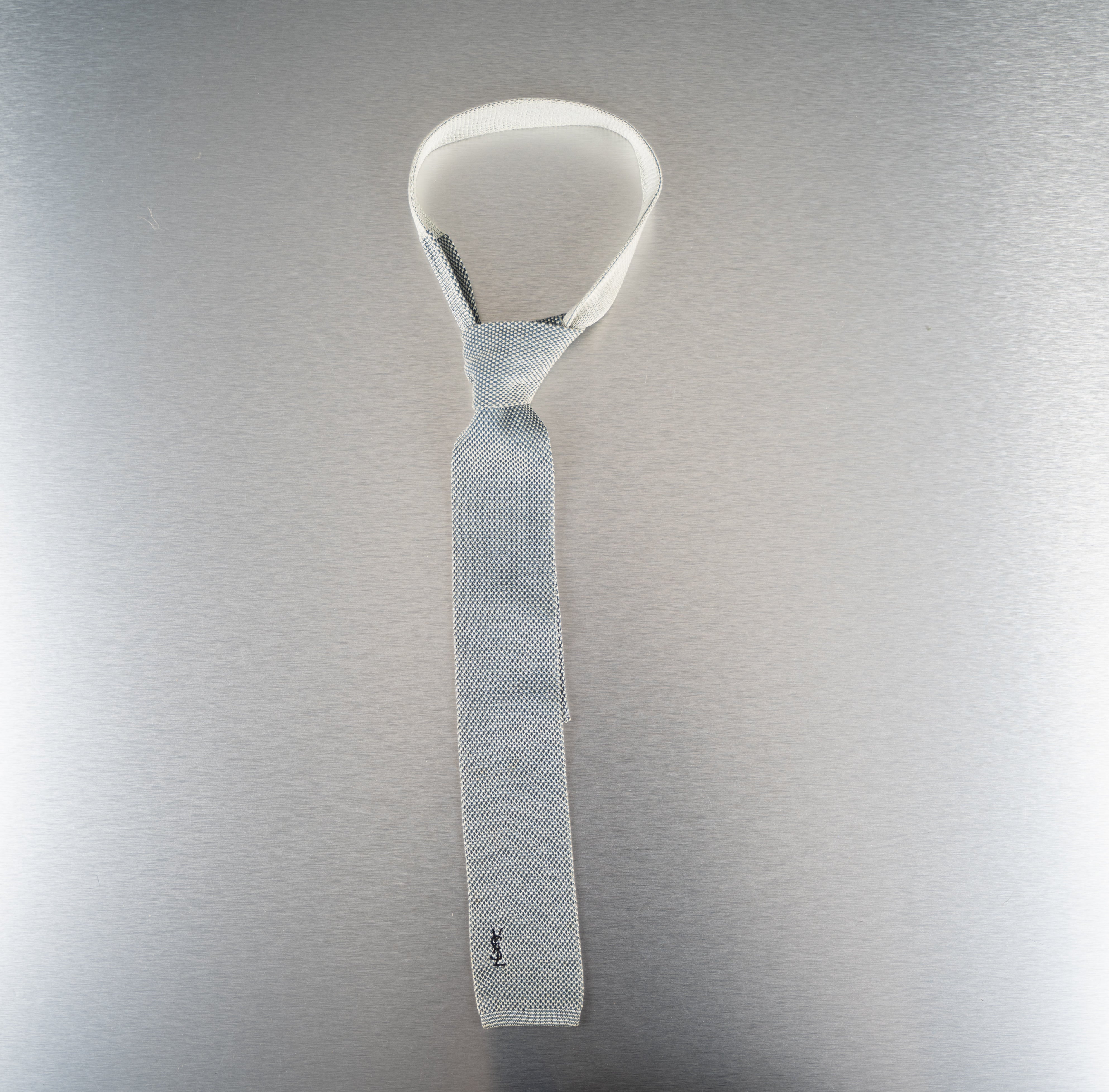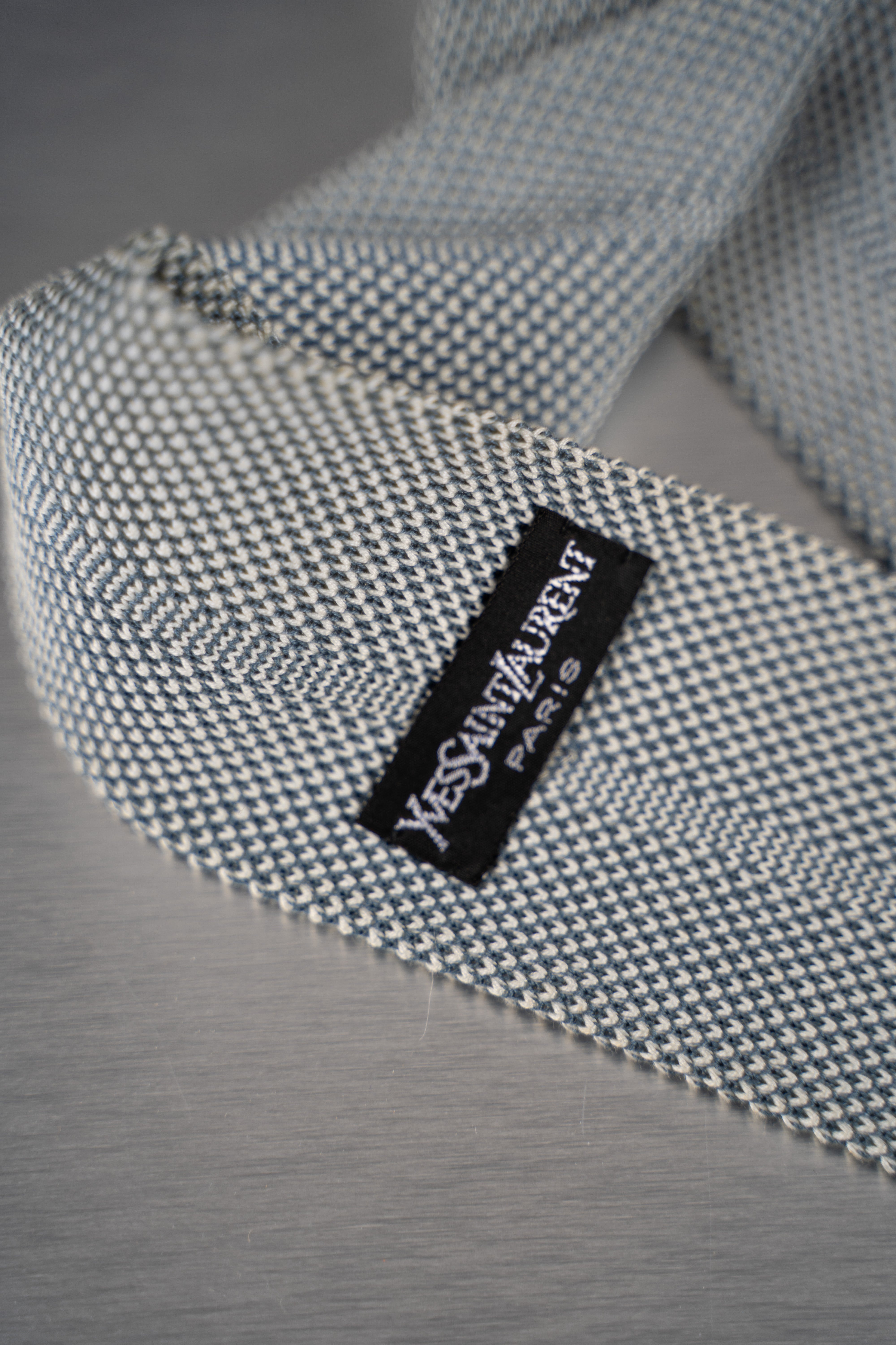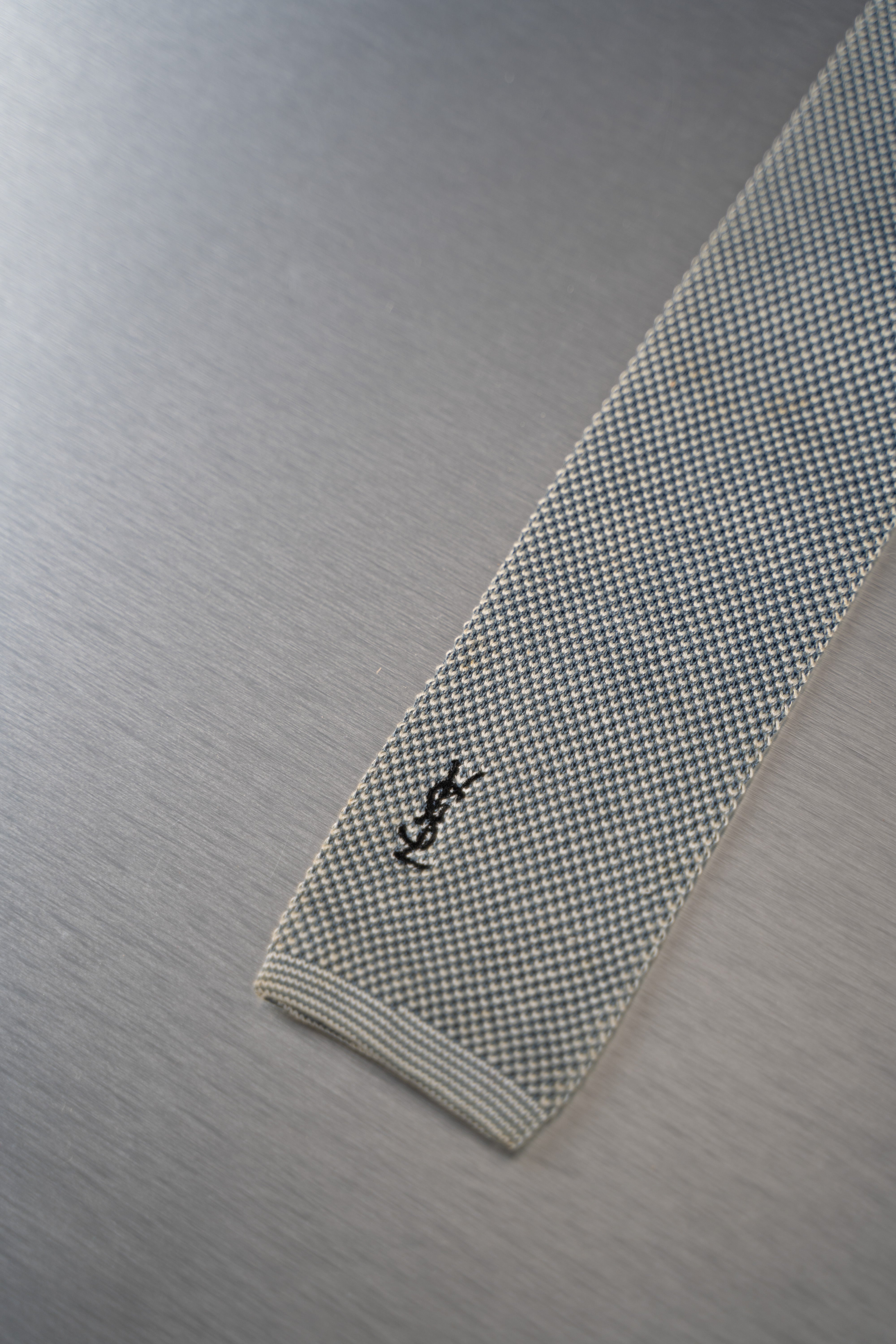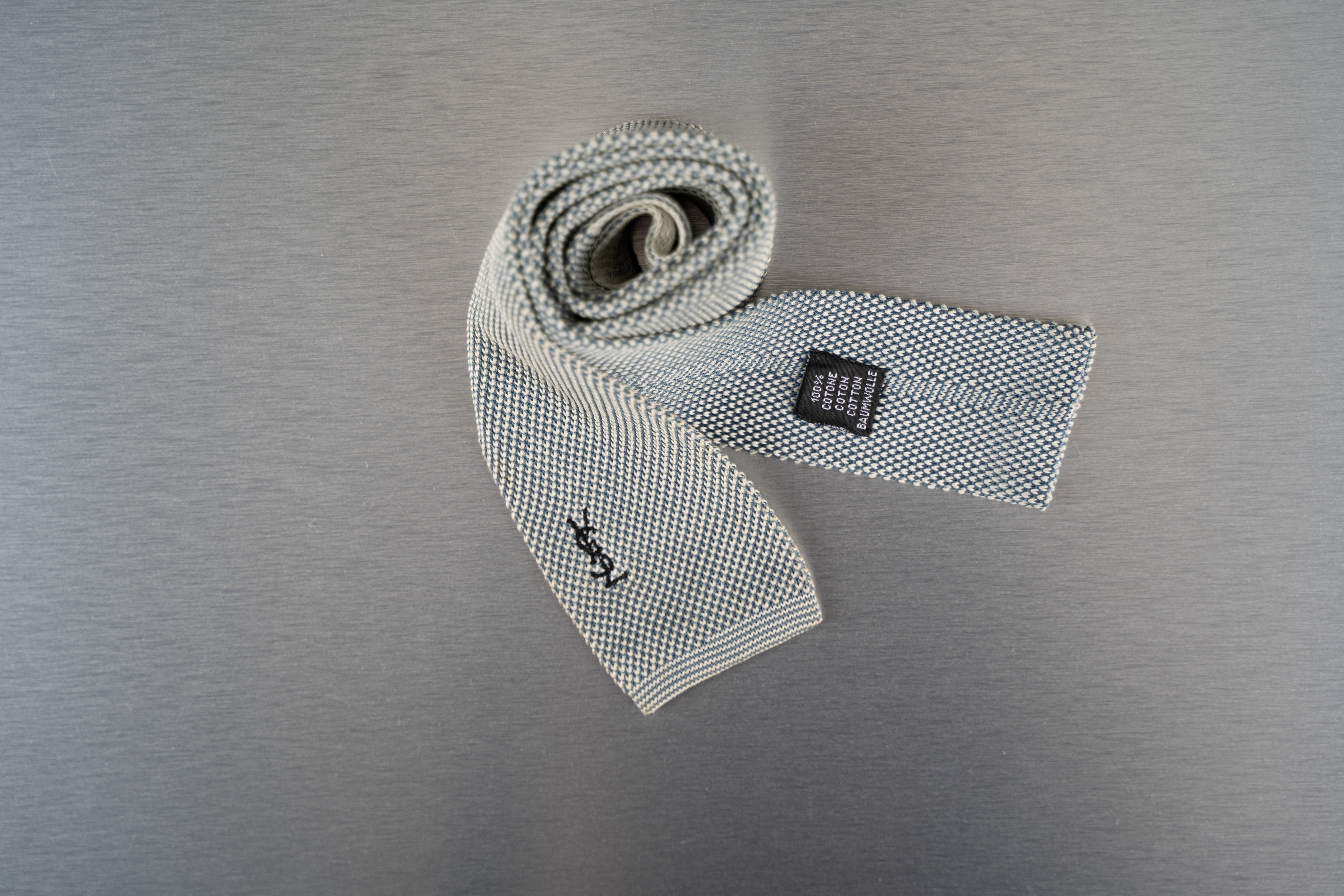 This White and Black Houndstooth Necktie is a stylish and versatile accessory. Predominantly white with a pattern of small, evenly spaced black dots, creating a subtle yet stylish houndstooth effect. Made from a woven material, likely polyester, this necktie is suitable for formal or business-casual occasions and is in Good condition.
